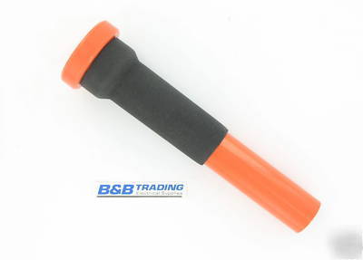Designed for use on standard ground rods 5/8" - 7/8" diameter, the large 2 1/2" diameter head provides approximately 6 times more surface area than the ground rod head itself for your hammer to strike. The flat interior helps to minimize "mushrooming" of the ground rod head resulting in easier installation of ground wire clamps etc. The 9 1/2" overall length fits easily in to most tool bags and boxes. Premium safety orange powder coat finish and cushioned grip completes the package, no accessories required. (hammer is not included). Saves time and helps prevent bodily injuries.