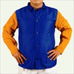 Proban FR 7A treated cotton sateen offers cool comfortable body protection. Superior flame, heat, and abrasion resistant cowhide leather for heavy duty arm protection. Washable flame retardant treatment allows washing without losing its flame retardancy.